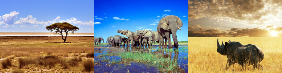 - National parks Etosha, Bwabwata, Okavango, Chobe.