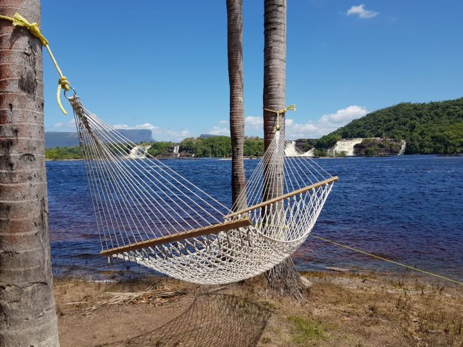 Рано утром после завтрака отправляемся смотреть жемчужину этого тура — водопад Анхель во всей красе! Эта поездка будет не из простых так как нам предстоит 5 часов идти по рекам на каноэ. Местами мы будем покидать лодку, идти пешком, пока лодка будет проходить непростые пороги. Ближе к обеду мы прибудем на место и впервые в жизни увидим самый высокий водопад в мире — водопад Анхель (высота падения воды — 1 км). Обед и идет сквозь джунгли к подножью водопада для того, чтоб искупаться в его водах! Вечером ужин и ночевка в гамаках под шум падающей воды. Утром позавтракав у нас будет немного свободного времени и мы возвращаемся в Канайму, откуда вечером вылетаем назад в Каракас.