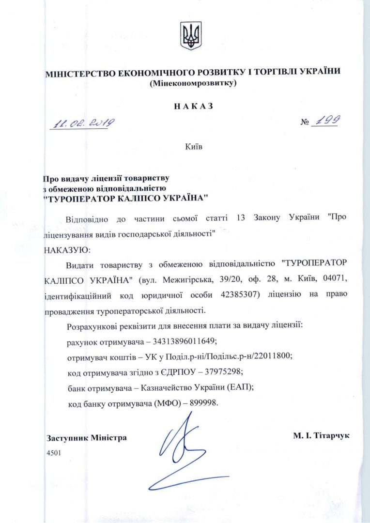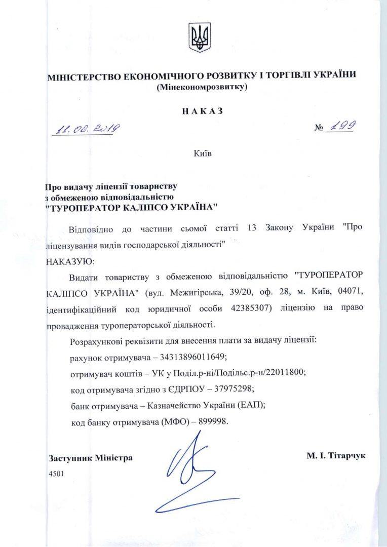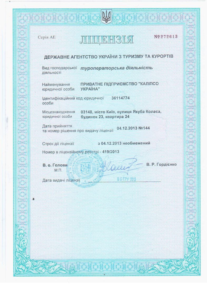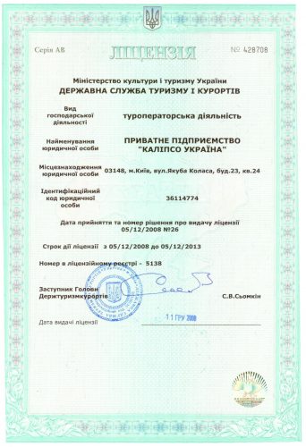 Туристична компанія «Каліпсо Україна» була заснована в 2008 г. Ми маємо ліцензію на здійснення туроператорської діяльності з мозливістю надання всіх видів туристичних послуг: