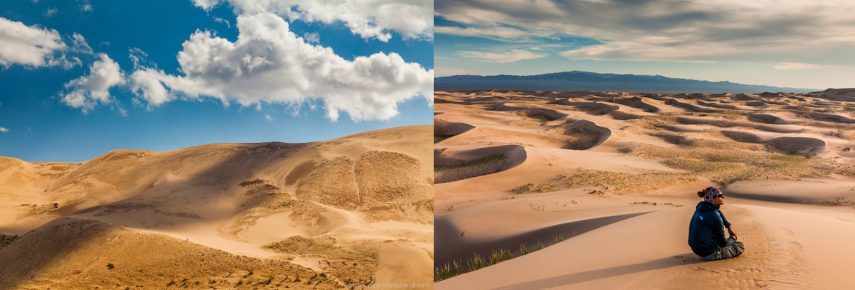 Сьогодні ми проїдемо через великі простори Гобі-пустелі до нашого наступного місця призначення. дюнам Хонгор, найвищим піщаним дюнам у Монголії. Ці дюни мають ширину 20 км та довжину 100 км. Річка Хонгорійн тече вздовж дюн і створює оази. Колір дюн змінюється щогодини протягом дня, від жовтого до сріблястого, і червоного на світанку. Дюни видають звук, що нагадує звук літакового двигуна у вітряний день, тому їх називають «Дюнами, що співають». Найбільші та вражаючі піщані дюни, Хонгорські дюни також відомі як «Співаючі дюни».