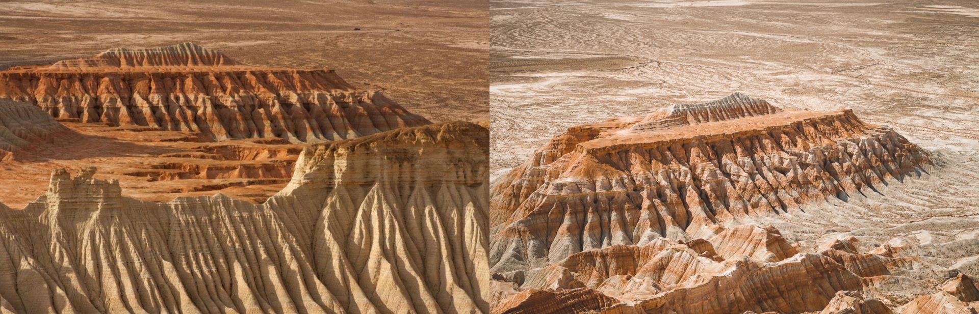 Вранці перелітаємо з Ашгабада до Туркменбаші. Після прильоту вирушаємо до дивовижних природних об'єктів – Каньйони Янгікала на Північному Заході Туркменістану у Балканському велаяті (області). З туркменської Янгі-кала - Це вогняні фортеці. Таку назву каньйони отримали через переважаючий червоний колір порід, з яких складені гірські масиви та обриви. Каньйони є неймовірно красивим видовищем. Колись тут плескалися води стародавнього моря (та й зараз з багатьох точок видно води затоки Карабагазгол, що раніше була частиною Каспійського моря). Море пішло, оголивши стрімкі береги та величезні пагорби. Найцікавіше – це кольори гірських порід, від чисто білого до вогняно-червоного. Залежно від часу доби та освітлення, гори змінюються прямо на очах. Особливо красиві каньйони на заході сонця, коли все навколо забарвлюється в вогняні тони.