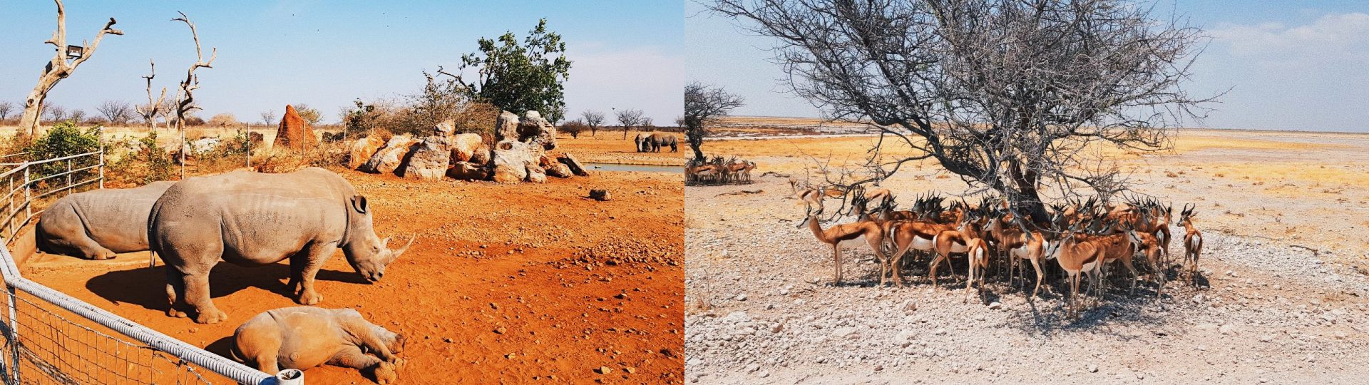 6 день. Національний парк Етоша. НАМІБІЯ. 16/11/2023 Ситний сніданок у лоджі перед кульмінацією першої половини подорожі – САФАРІ у Національному Парку Етоша. Цілий день присвятимо спостереженню за фауною національного парку. Тут мешкають слони, носороги, буйволи, леви, леопарди, жирафи, каракали, зебри, страуси та близько 20 видів антилоп. Не виключена зустріч із гепардом. Житимемо в лоджі прямо біля водопою тварин. Розміщення: Etosha Safari Camp2Go |