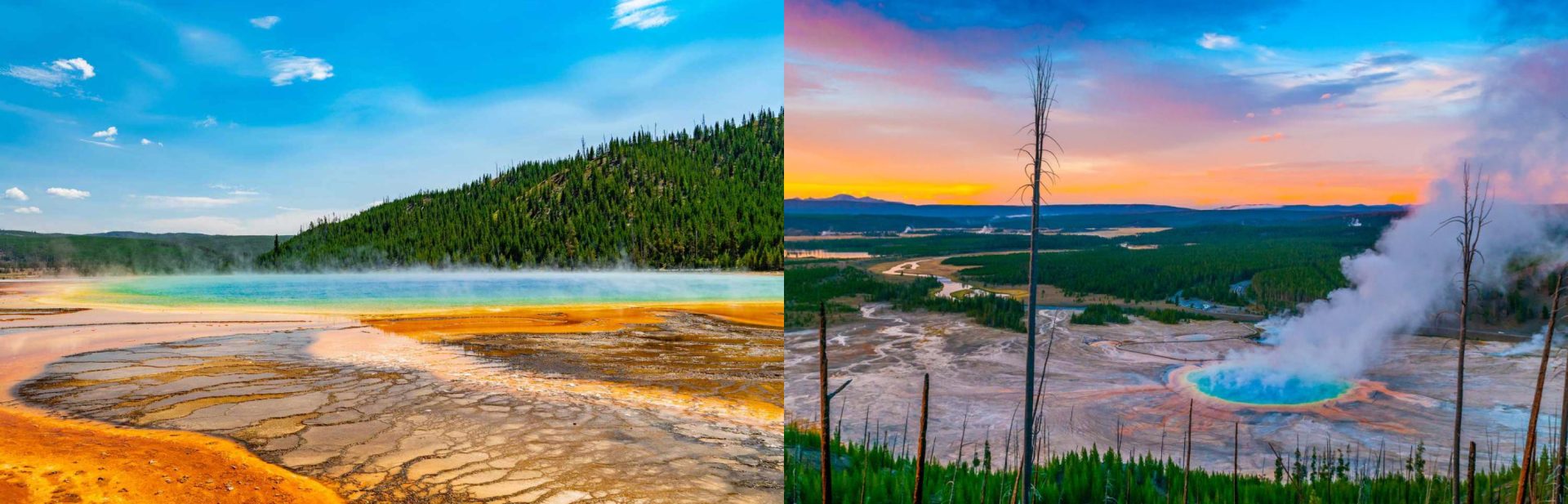 Нас чекає: великий Каньйон Єллоустона, Верхній і Нижній водоспади річки Єллоустон, озеро Єллоустона - Це найбільше в Америці гірське озеро на висоті більше двох км, Долина Хейден — ця широка долина США, яка є центральним місцем проживання американських бізонів. Далі на нас чекає Гейзер Олд-Фейтфул, що вивергає понад 10 тис. літрів води за півтори хвилини Гранд гейзер вивергається потужними струменями, що піднімаються на 45-60 метрів.