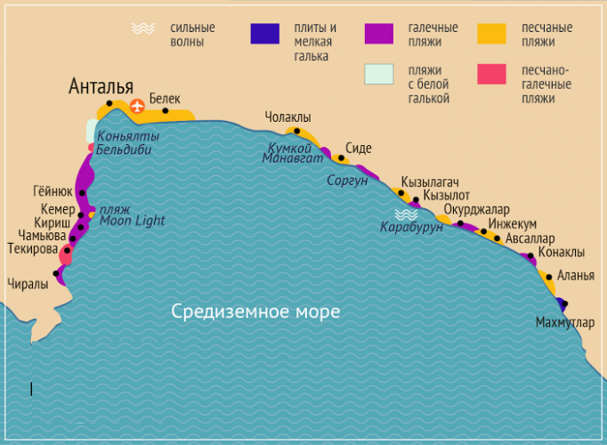 Пляжі Анталійського узбережжя – пісок, галька, плити?