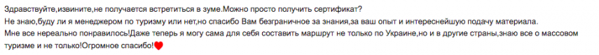 Бажаєте працювати в туризмі?✈️Мрієте, щоб подорожі стали Вашою роботою? Тоді є шанс почати прямо зараз, online, без груп! 😀 Після закінчення курсів усі отримують сертифікат! 16 онлайн уроків по 1 годині без «вивчіть це питання», «читайте про це», все по справі, зі скрінами, особистими підтвердженнями та детальною інформацією. Після курсу вам не треба нічого доучувати, крім готельної бази країн. Можна сміливо йти працювати! Ми в Україні та продовжуємо роботу для України та для нашої якнайшвидшої Перемоги! А ви маєте можливість саме зараз у вільний час навчитися давній мрії для відкриття нового бізнесу! Скоро ✈️!